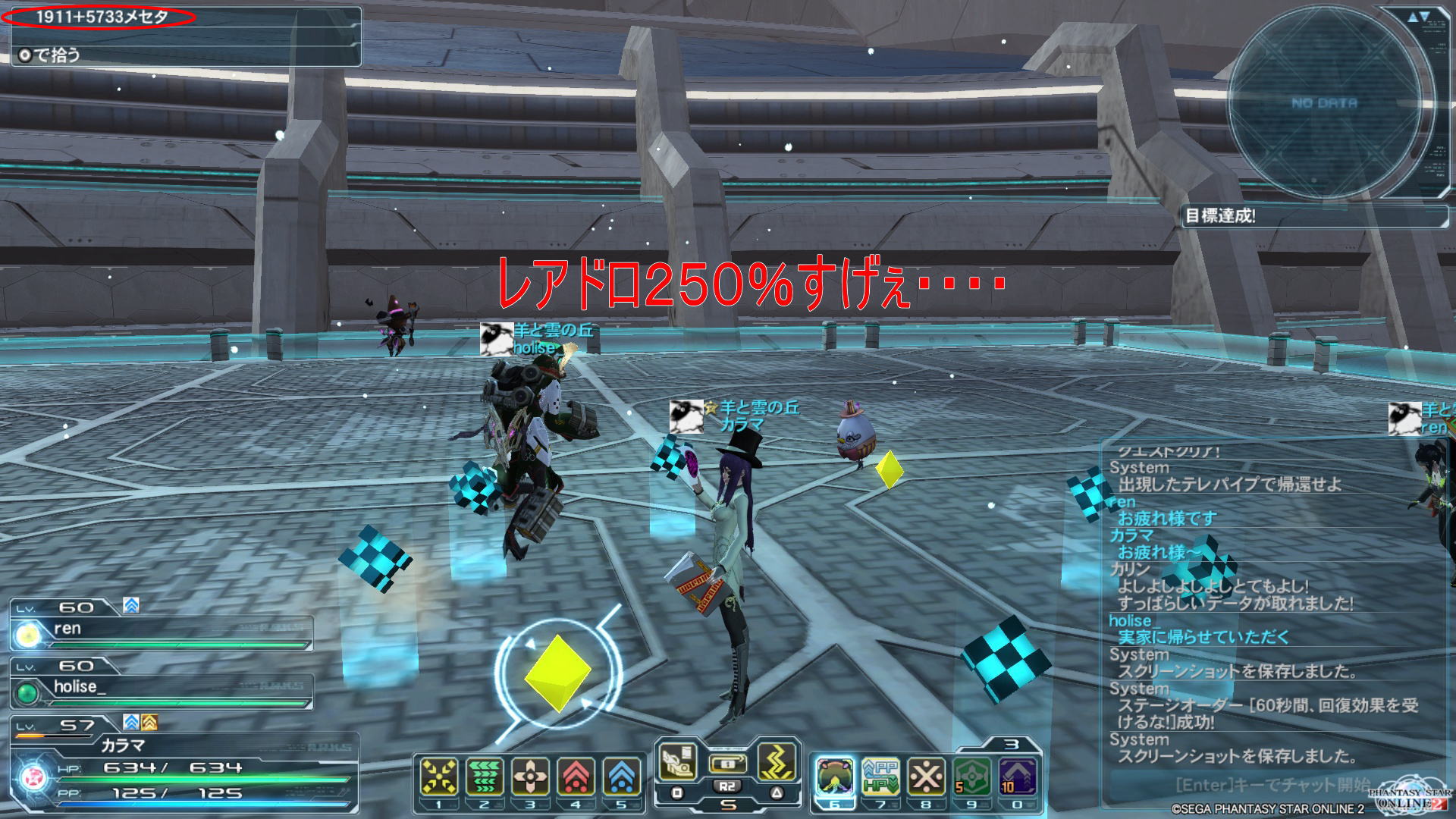 ブーストアイテムのメセタ+50%も使用したので実質、獲得メセタは250%ですねぇ。