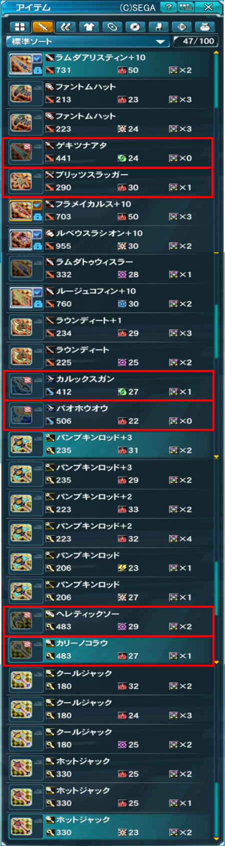 ゴミも含めて20時の緊急でコレだけ拾いましたぜ!↓(赤枠で囲ったアイテムが☆10です)