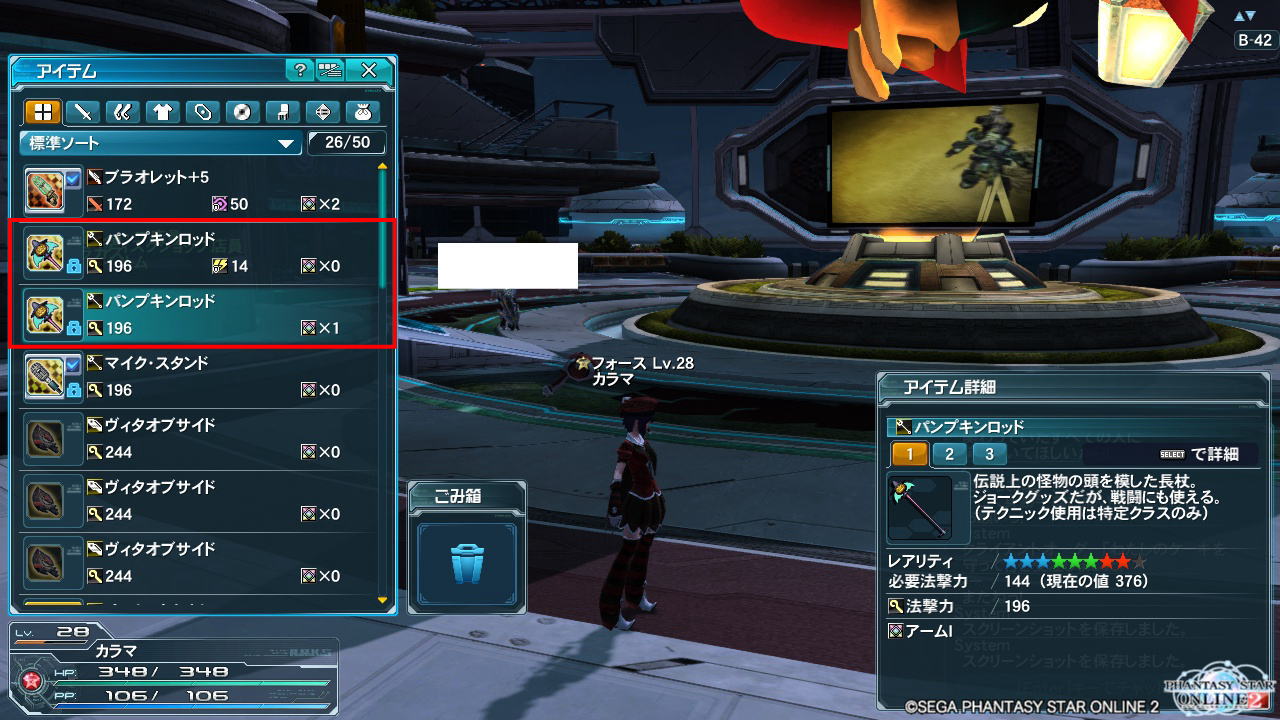パンプキンロッドを -AKI- と カラマ の分2本貰ったんですけど、属性も特殊能力も完全ランダムみたいですね・・・・。
